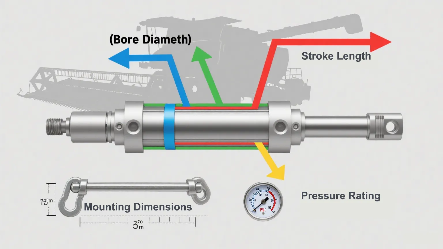 प्रथम, बोर व्यास. तुमच्या हार्वेस्टर हायड्रॉलिक सिलेंडरमध्ये किती स्नायू आहेत हे हेच ठरवते. खूप लहान, आणि जेव्हा तुम्ही जाड पीक घेत असाल तेव्हा ते भारी हेडर उचलण्यासाठी संघर्ष होईल. खूप मोठे, आणि तुम्ही उर्जा वाया घालवत आहात जी इतरत्र जाऊ शकते. तुमच्या जुन्या सिलिंडरचे चष्मा किंवा तुमच्या कापणी यंत्राचे मॅन्युअल तपासा—या क्रमांकाशी जुळणारे, साधे आणि साधे असणे आवश्यक आहे, जर तुम्हाला शेतातील कठीण दिवस हाताळणारी ताकद हवी असेल.