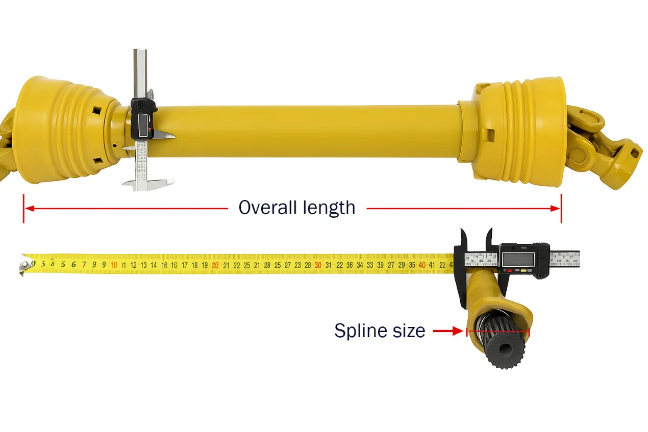 पुष्टी करणारी पहिली गोष्ट म्हणजे ड्राइव्ह शाफ्टची एकूण लांबी. ही लांबी मागे घेतलेल्या अवस्थेत पीटीओ शाफ्टच्या टोकापासून टोकापर्यंतच्या अंतराचा संदर्भ देते, म्हणजेच एका काट्याच्या बाहेरील काठापासून दुसऱ्या काट्याच्या बाहेरील काठापर्यंत, संरक्षणात्मक आवरण वगळून. बरेच वापरकर्ते फक्त म्यानची लांबी मोजतात, जे चुकीचे आहे.