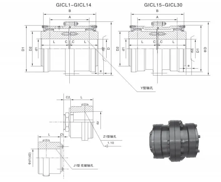 GIGL ड्रम शेप गीअर कपलिंग दीर्घकाळ चांगले चालू ठेवण्यासाठी, ते विश्वसनीय स्नेहन संरचना आणि सीलने सुसज्ज आहे जे त्याचे सेवा आयुष्य वाढवते आणि देखभाल सुलभ करते. त्याची सममितीय रचना उत्कृष्ट अदलाबदली सुनिश्चित करते, म्हणून आवश्यक असल्यास भाग बदलणे सोपे आहे. हाय-स्पीड ऑपरेशन्ससाठी जेथे परिधीय गती 36 m/s पेक्षा जास्त जाते, आम्ही कंपन टाळण्यासाठी आणि स्थिर कार्यप्रदर्शन सुनिश्चित करण्यासाठी डायनॅमिक बॅलन्सिंग लागू करतो. शाफ्ट होल कॉन्फिगरेशन देखील लवचिकता देतात: GIGL ड्रम शेप गियर कपलिंग वापरणाऱ्या विविध औद्योगिक मशीनसाठी वेगवेगळ्या कनेक्शनच्या गरजा पूर्ण करण्यासाठी Y, Z1 आणि J1 प्रकार एकत्र करणे. Raydafon, एक विश्वासार्ह उत्पादक, GIGL च्या पलीकडे ड्रम शेप गियर कपलिंगची संपूर्ण श्रेणी तयार करते, ज्यामध्ये GICL, GIICL, GICLZ, GIICLZ आणि NGCL प्रकारांचा समावेश आहे - सर्व गुणवत्ता हमी देण्यासाठी कठोर उद्योग मानकांची पूर्तता करतात.