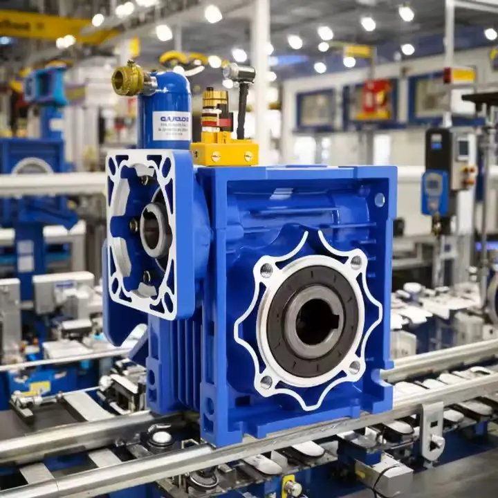 RV मालिका वर्म गियर रिड्यूसर ॲल्युमिनियम मिश्र धातुचे कवच स्वीकारते, जे वजनाने हलके असते आणि जलद उष्णता नष्ट होते. हे स्थापनेसाठी योग्य आहे जागा-प्रतिबंधित किंवा मोबाइल उपकरणे. बॉक्सची पृष्ठभाग एनोडाइज्ड आहे आणि मजबूत गंजरोधक क्षमता आहे. हे विशेषतः दमट आणि धुळीच्या वातावरणासाठी किंवा दीर्घकालीन स्थिर ऑपरेशनची आवश्यकता असलेल्या कामाच्या ठिकाणी योग्य आहे. हा अळी उच्च-गुणवत्तेच्या मिश्र धातुच्या स्टीलचा बनलेला आहे, ज्यावर कार्ब्युरायझिंग क्वेंचिंग आणि अचूक ग्राइंडिंगद्वारे प्रक्रिया केली जाते आणि उच्च-शक्तीच्या टिन ब्राँझ वर्म व्हीलशी जुळते. यात उच्च मेशिंग अचूकता आणि शांत आणि स्थिर ऑपरेशन आहे. हे सतत लोड स्थितीतही स्थिर आउटपुट राखू शकते आणि उपकरणांचे एकूण आयुष्य वाढवू शकते.